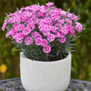 A striking hardy perennial with delicate light magenta single owers with a dark magenta star shaped eye over grey compact foliage. Beautiful clove scent. Flowering from Spring to Autumn, it is ideal for containers, pots or your garden border. Ht 30cm.