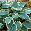 Showy, medium sized Hosta. Blue leaves have wide, creamy white margins. Margins take a greenish blush in summer. Excellent ground cover.